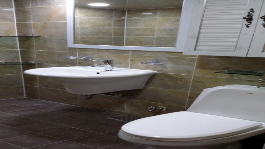 이번에 욕실리모델링 한곳은 한라전원 아파트 입니다. 욕실 크기가 상당히 커서 시공하시는 사장님이 고생을 했습니다. 주인이 꼼꼼히 자재를 살펴서 선택했는데요 이 타일이 이렇게 새련되게 보일 줄이야~~~ 욕실이 커서 시원스레함다~~ 매립등도 3개 반다리 세면대 계림제품입니다. 시원스럽고 고급스러운 분위기 영광타일로 오세요~~~ T. 052 - 953 - 7589
